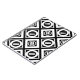 O padrão geométrico em negrito apresenta os diamantes brancos, grossos e finos, alternados, com espaço entre eles sobre fundo preto. Cada um dos diamantes grossos contém um círculo branco fino com um sinal branco grosso igual em um dentro de ângulo. Em contraste, cada um dos diamantes finos contém um círculo branco grosso que toca as bordas com um dentro de signo igual, branco e inclinado fino. Imagem criada digitalmente. Copyright © 2014 Claire E. Skinner. Todos os direitos reservados.