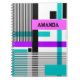 Caderno Espiral padrão geométrico em cores listradas e néon