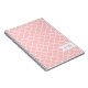 Um notebook elegante com um padrão bonito de quatrefoil geométrico, cor-de-rosa-claro e branco, com o nome ou o texto de sua escolha em uma fonte de tendência.