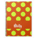 Adicione seu nome nesta bola verde brilhante de tênis no design de padrão de fundo laranja.