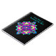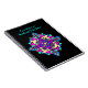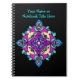Um notebook espiral preto inteligente com um padrão tradicional Rangoli brilhante, cor-de-rosa chocante, turquesa, verde-neon e bege, de um design digital de Judy Adamson.
