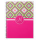 Caderno Espiral Padrão Quadrado de Ouros de Cinzas Verdes Rosa Mon