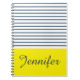 Padrão de listras branco, azul e amarelo moderno com nome personalizado