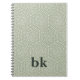 Caderno Espiral Padrão verde de sábio moderno monograma