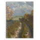 Uma pista de campo atravessa as árvores, resplandecendo em sua finaria de outono como folhas caídas espirrando na brisa suave neste trabalho de arte digital original criado em Vue pelo artista Jayne Wilson.
