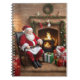 Este caderno de Natal apresenta uma cena emocionante do Papai Noel sentado em frente a uma lareira crepitante, irradiando conforto e alegria.
