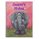 Notebook de elefante de desfile em animais é para o seu lado divertido apresentando nossa arte original de um lindo personagem elefante na grama verde da Savana com um céu rosa e uma borda violenta roxa pintada pelo artista infantil talentoso Traci Van Wagoner. Em muitos dos nossos produtos animais brancos, vocês verão o ritmo divertido vindo e indo com este trabalho de arte divertido da cabeça do elefante caprichoso na frente e a cauda do elefante safari nas costas. Junte-se à Parada Animal e ao comprar de um conjunto completo de acessórios personalizáveis para casa e escritório do Elefante para Paradas Animais. Perfeito para amantes de elefantes de todas as idades.