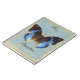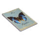 Uma bela imagem chique de uma borboleta azul, sobre um fundo azul com um roteiro antigo francês. ©Wickedlylove