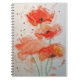 Caderno Espiral Papoulas Vermelhas Brilhantes Aquarela Floral Flor