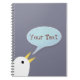 Desenho de um pássaro com bolha de fala e texto personalizado
