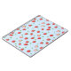 Um padrão lúdico cheio de morangos pintados à mão, pequenas flores brancas, e folhas verdes sobre um fundo pastel azul claro. Excelente para produtos com primavera ou impressões de tecido fofo.