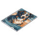 Design de arte vívida colorida de um pastor australiano numa praia tropical.