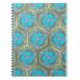 Tome notas em estilo com um notebook espiral com um dos íconesDoÉ uma arte original impressa em cores lindas e brilhantes no cobrir, com vários designs disponíveis para cada um dos seus humores e propósitos. Este captura a aparência e a sensação de um mosaico de azulejos cerâmicos em forma de hexágono pintados manualmente estrelando um trio de pavões inspirados na Arte em tons legal de aqua, lilás e marisco decoam decodificados com bordas pretas e douradas.