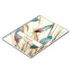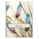 Penas sobre fundo de erva em aquarelas azuis e rosadas