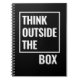 Prática caderno espiral com uma citação motivacional inspiradora criatividade e inovação: "Pense fora da caixa".