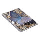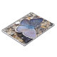 Pequena borboleta azul bonita sentada sobre a gravilha de cinza.
