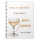Uma cor branca de fundo. Decorado com um copo de espumante Prosecco e pérolas. Adicionar um nome e uma data.