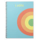 Caderno divertido arco-íris azul, vermelho, pêssego caderno de presentes em estilo moderno e minimalista com nome alvo azul, vermelho, pêssego, amarelo, azul-turquesa.