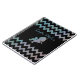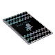 Design de notebook personalizável e adorável com uma silhueta unicórnio cintilante em um fundo brilhante iridescente riscado preto e zigzag. O texto é totalmente personalizável.