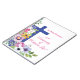 Flores laranja, lilás, rosa e azuis com folhas verdes ao lado de uma grande cruz azul, todas em branco. Um belo presente, lembrança, doação ou festa desenhada, essencial para felicitar uma boa freira por seu 50º aniversário da vida religiosa. Diga-lhe que deseja o melhor e que seu bom e generoso trabalho é muito apreciado.