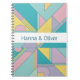 Add a pop of retro style to your notes with this eye-catching spiral notebook! The cover features a bold, 80s Memphis-inspired geometric pattern in pastel colors (teal, pink, yellow, blue). A customizable white band highlights the personalized names ("Hanna & Oliver"). Perfect for students, creative professionals, or as a unique couple's gift.