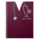 Creative nurse notebook featuring maroon nursing scrubs. To personalize edit text to add name.