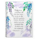 notebook floral inspiracional, diário retrata uma bela lavanda de aquarela e design de wisteria azul. Ele apresenta uma porção de Bíblias Verse Philippians 4:6-7, "Reze por tudo; diga a Deus suas necessidades... Se você fizer isso, experimentará a PAZ DE DEUS, que é muito mais maravilhosa do que a mente humana pode entender."