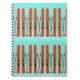 Pássaros vermelhos na neve com fundo azul no notebook espiral.
