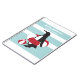 Um pinguim está de pé com um tubo interno vermelho e branco e bola de praia com um fundo azul claro e branco. Este lindo animal de desenho animado com texto personalizado faz um caderno único e fofo para crianças.