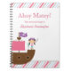 Este caderno feminino tem um tema de pirata rosa e roxo! Há uma pirata preta segurando uma espada navegando em seu navio pirata parado ao lado de um papagaio no lado esquerdo. Nas bordas superior e inferior, há um padrão tendencioso rosa, branco, esticado e listras aqua. No topo, Ahoy Matey! está escrito. Abaixo disso, você pode facilmente personalizar isso com seu nome. Alguns elementos design de STOCKBERRY STUDIO