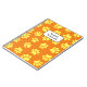 Desenhos de estampas de pata de cachorro em amarelo com fundo laranja. Cadernos em espiral personalizados. Edite o nome para personalizar este bloco de anotações. Ideia de presente para amantes de cães.