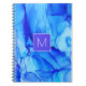 Caderno Espiral Pintura em Monograma Branco Abstrato Azul Moderno