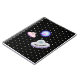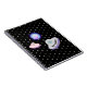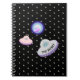 Cute pires voadores com alienígenas azuis e padrão de estrelas brancas em fundo preto Notebook. O texto pode ser personalizado.