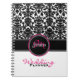 Caderno Espiral Placa Casamento tema damasco Branco preto-rosa mon