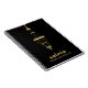 Um candelabro de ouro metálico alto é o logotipo elegante gráfico em nosso notebook preto exclusivo para planejadores de eventos. Nós chamamos de "exemplo" o negócio "Eventos de Casamento de Solteira" para planejadores de eventos especializados em casamentos menores e íntimos com eventos noturnos. Esse nome de escala superior e outro texto podem ser facilmente revisados usando o modelo de personalização.