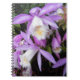 Para fãs duros de orquídeas! Um notebook de tamanho pessoal, encadernado em espiral, que apresenta a foto do cobrir de lindas, roxas e brancas flores das Pleione Orchid, também conhecidas como Orquídeas do Windows. Um design floral adorável!
