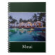 Um notebook brilhante de cobrir impresso a cores vibrantes, com uma imagem de copas de madeira suavemente iluminadas, que refletem na piscina e acolhem convidados para apreciar a manhã de madrugada do Grande Hotel Wailea em Maui, Havaí. Veja toda a coleção de notebooks Hawaii na seção OFFICE.