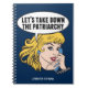 Vamos Abaixe o caderno Patriarcado. Um presente de feminismo de arte retrô-pop bonitinho com um monograma para uma mulher pró-escolha forte votando pela liderança feminina em nosso país. Defenda os direitos das mulheres e o empoderamento feminino com este desenho político legal que apresenta um bonito líder loiro planejando uma marcha feminina num telefone vintage com uma citação engraçada numa bolha de palestras.