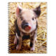 Fotografia de um adorável leitão rosa e preto com fundo de palha.