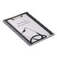Design de negócios sofisticado e profissional para fins médicos: uma prancheta de couro cinza com papel em branco e um estetoscópio. Perfeito para qualquer negócio relacionado à saúde e cuidados médicos, como consultório médico, clínica ou hospital. Para funcionários hospitalares, médicos, enfermeiros; sofisticado, nobre e elegante.
