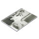 Homem que faz pratos de lavagem na cozinha, tubulação nos dentes, (marcas de B&W) | George | AssetID: 57539450