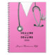 Arte criativa de caderno de enfermeira com uniforme rosa de hospital, estetoscópio e caneta multifuncional. Para personalizar, edite o texto para adicionar nome e ano.