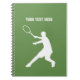Presente feito sob encomenda do livro de nota do tênis para o jogador ou o treinador. Design moderno da silhueta com raquete. Adicione seu próprio nome ou título. A ideia desportiva do presente de aniversário para miúdos, o menino, a menina, o marido, a esposa, o treinador, o amigo, o pai, a mamã, o grndson etc. mantêm-se a par de contagens, de fósforos e de eventos em seu próprio jornal. Escritório e de volta às fontes de escola para ele e ela.