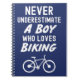 **Título:** Presentes de Ciclismo Azul Marinho Fofo para Bebês Meninos Caderno - Nunca Subestime um Menino que Ama Ciclismo