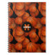 Este notebook espiral de basquete divertido e esportivo apresenta um padrão aleatório de bolas de basquete de tamanho variado que têm uma aparência tridimensional em um fundo preto - personalize com o nome e o monograma do jogador de basquete - por katz_d_zynes