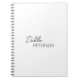 Caderno empresarial preto e branco moderno e profissional com um design simples e minimalista com o seu nome numa escrita elegante e tipografia sans serif contemporânea.