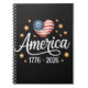 Caderno Espiral Pretty Flag Heart 1776-2026 July 4th 250th
