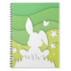 Caderno Espiral Primavera paisagem, coelho de páscoa sobre grama
