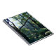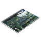 Brilhantes raios brancos do sol matinal, que passam por trás de galhos escuros para uma rica floresta verde de verão, com árvores maciças cobertas de mariposa e mato fértil.