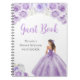 Este doce livro de 16 hóspedes apresenta uma bela princesa em um vestido roxo empoeirado com arranjos florais. Isto é perfeito para uma doce festa de aniversário de dezesseis.